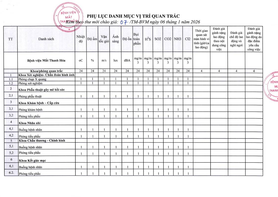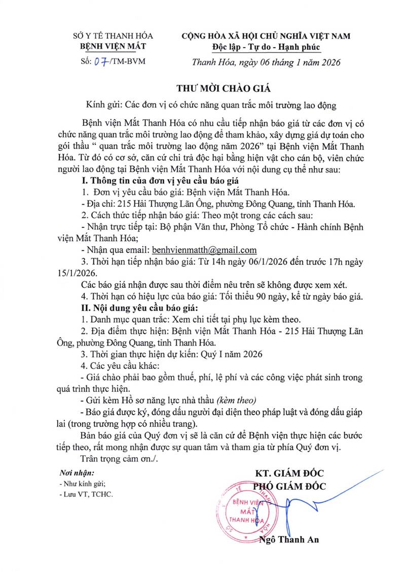 - Thư mời chào giá cho gói thầu quan trắc môi trường lao động năm 2026