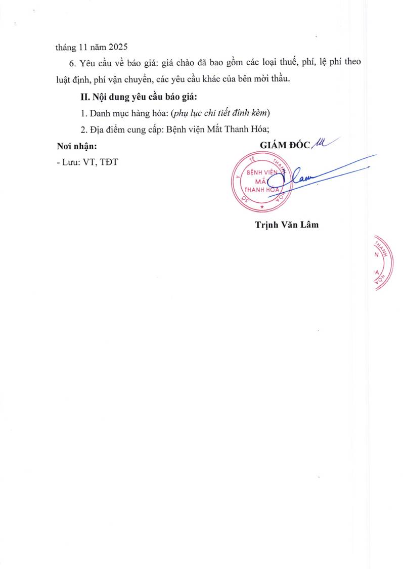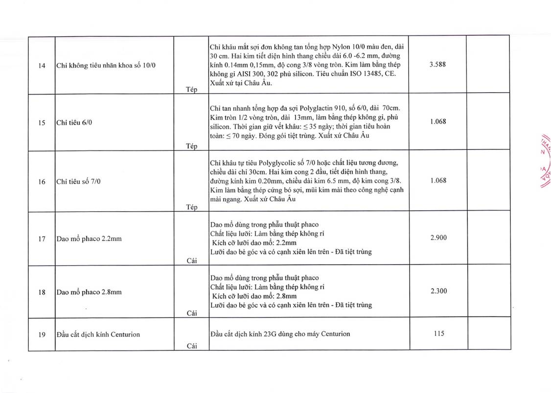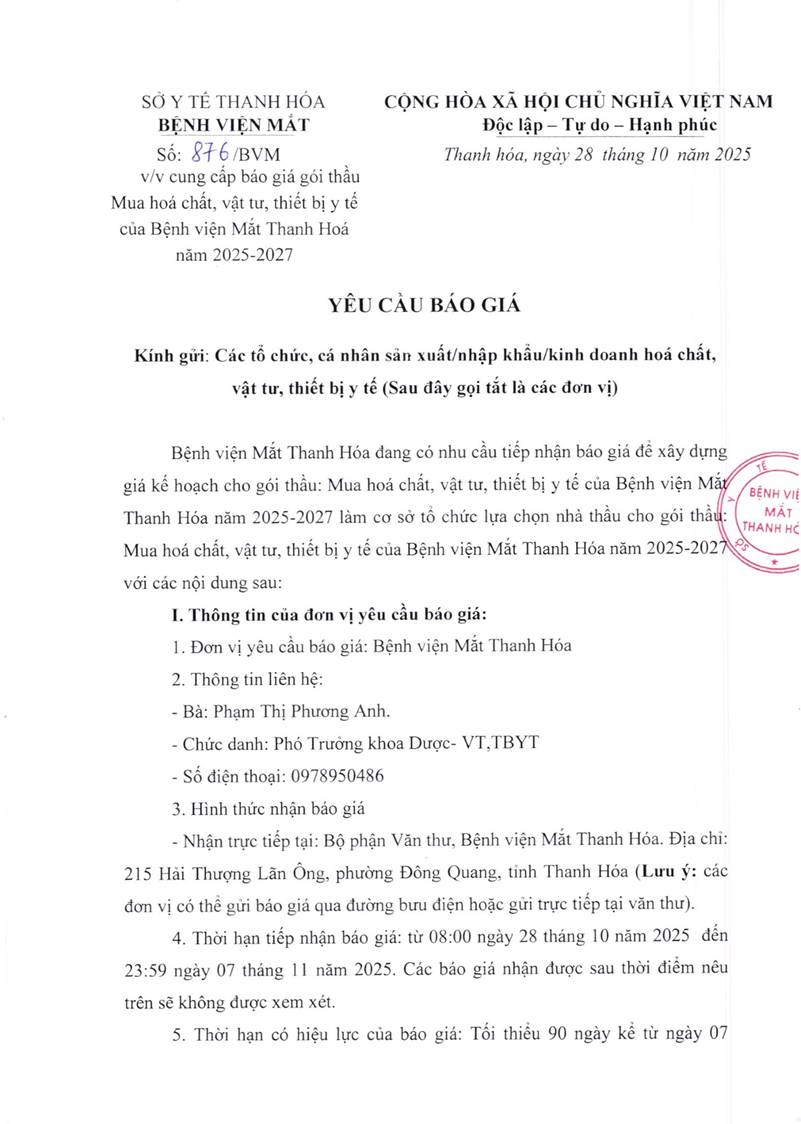 - Yêu cầu báo giá cho gói thầu mua thuỷ tinh thể nhân tạo của Bệnh viện Mắt Thanh Hoá năm 2025-2027