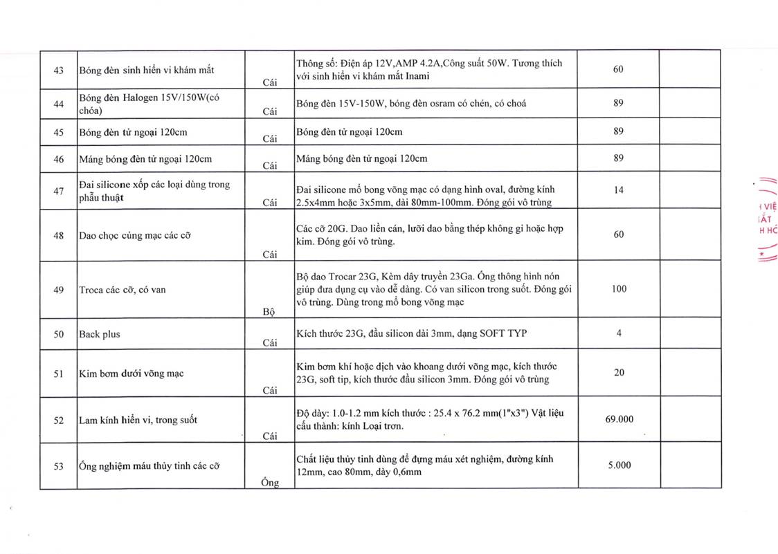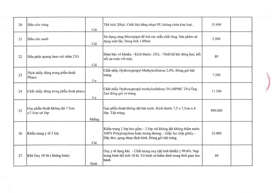 - Yêu cầu báo giá cho gói thầu mua đầu rửa hút Intrepid cho máy mổ Phaco Centurion